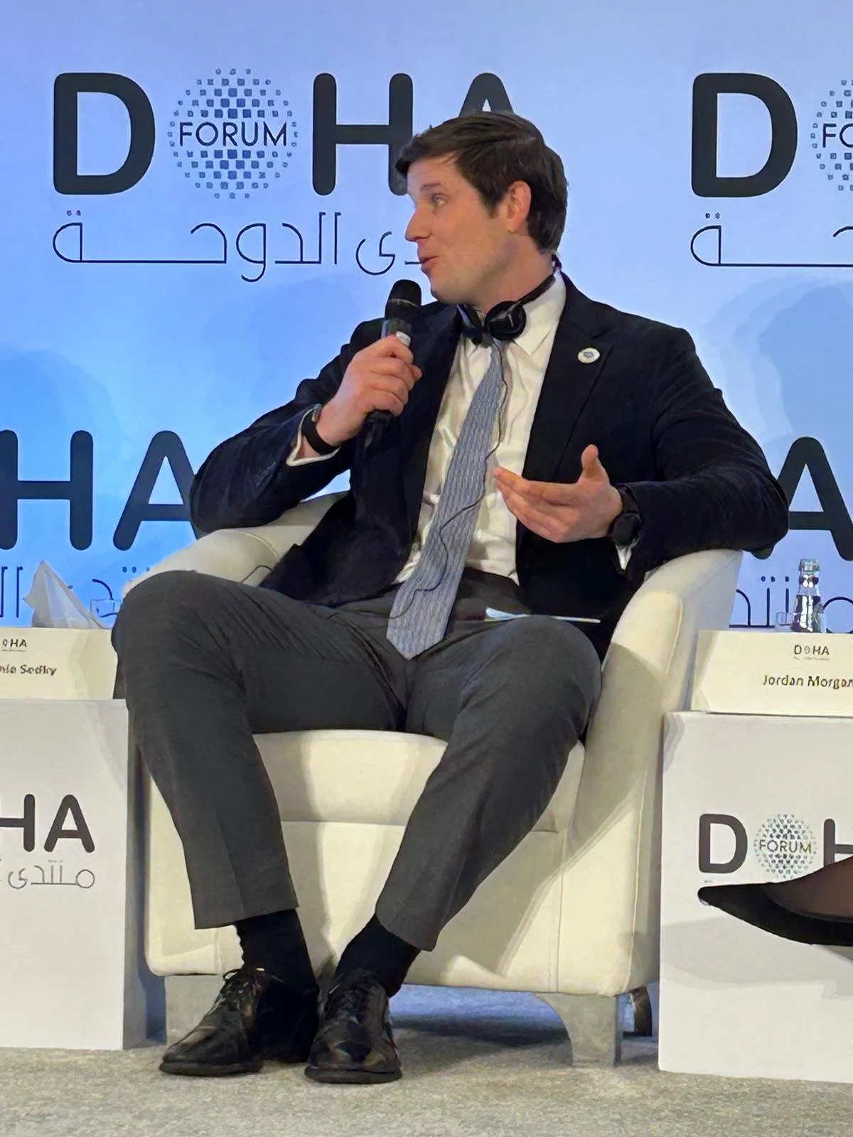 Jordan Morgan speaks at the Doha Forum.